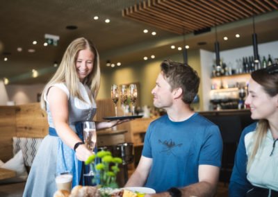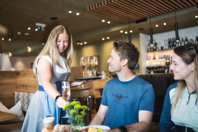 Unser Hotel in St. Anton und die Pension in St. Anton verfügen über eine ausgezeichnete Küche, in der sogar hausgemachte Produkte wie Marmelade und Vollkornbrot hergestellt werden. Einmal pro Woche organisieren wir einen sogenannten „Greenday“, an dem wir Ihnen vegetarische Gerichte schmackhaft machen. Im Winter können Langschläfer auch nach den Frühstückszeiten an der Bar ein herzhaftes oder herzhaft-süßes „Frühstücksbrettl“ genießen.