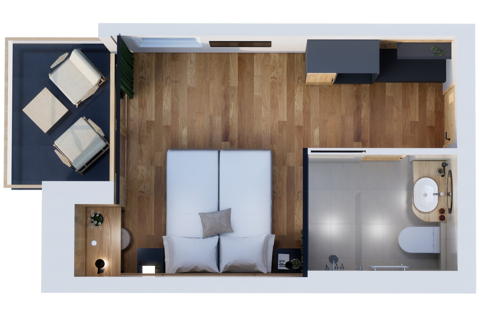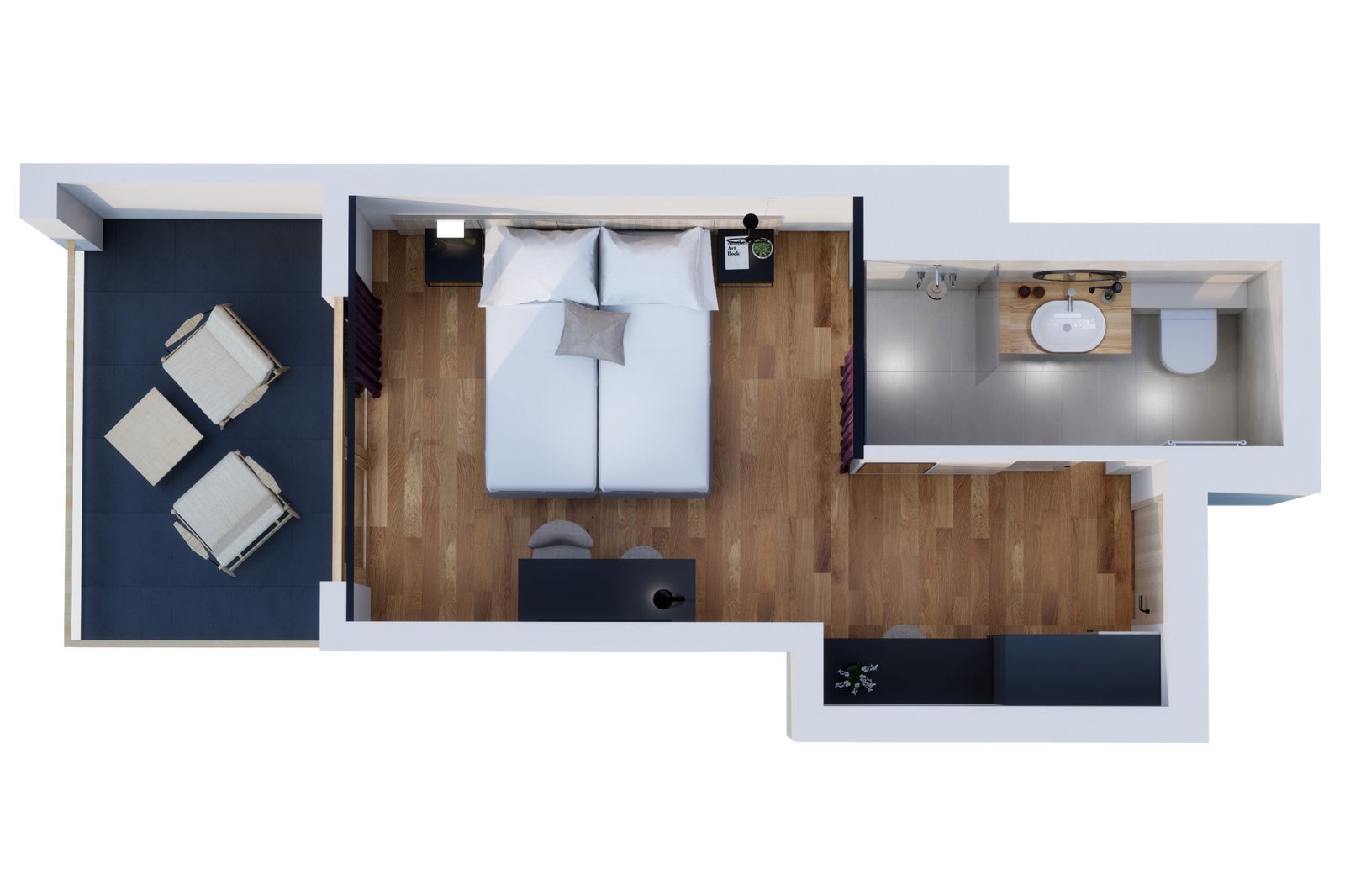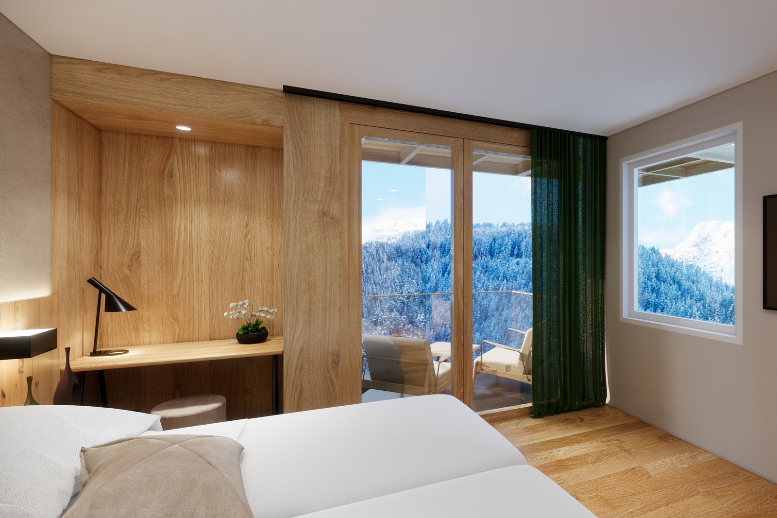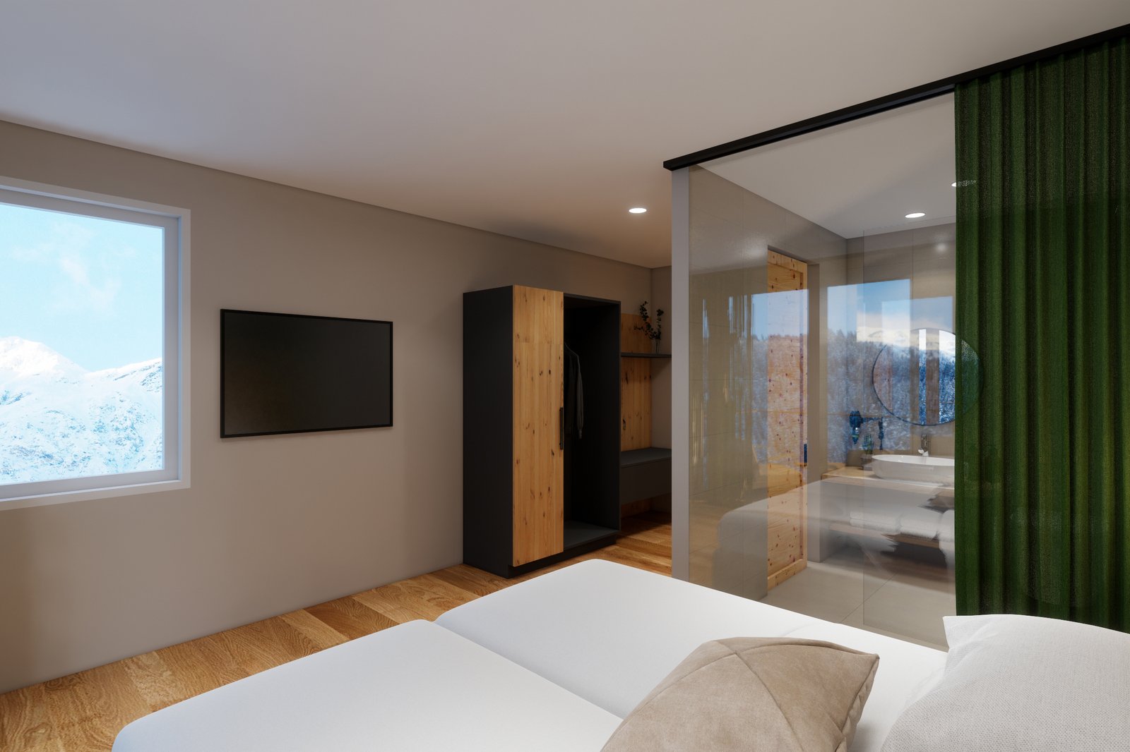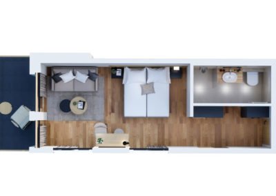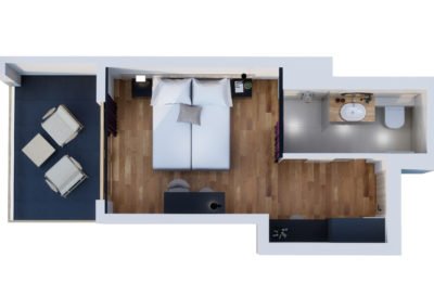 these light-flooded, approx. 28 m² rooms with a direct view of the mountains are a special highlight. The rooms have the following equipment: