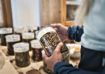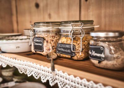 Bovendien willen we in Hotel Die Arlbergerin onnodig plastic vermijden. Onze zelfgemaakte jam wordt geserveerd in potten en ook onze boter wordt zonder verpakking aan het buffet aangeboden.
