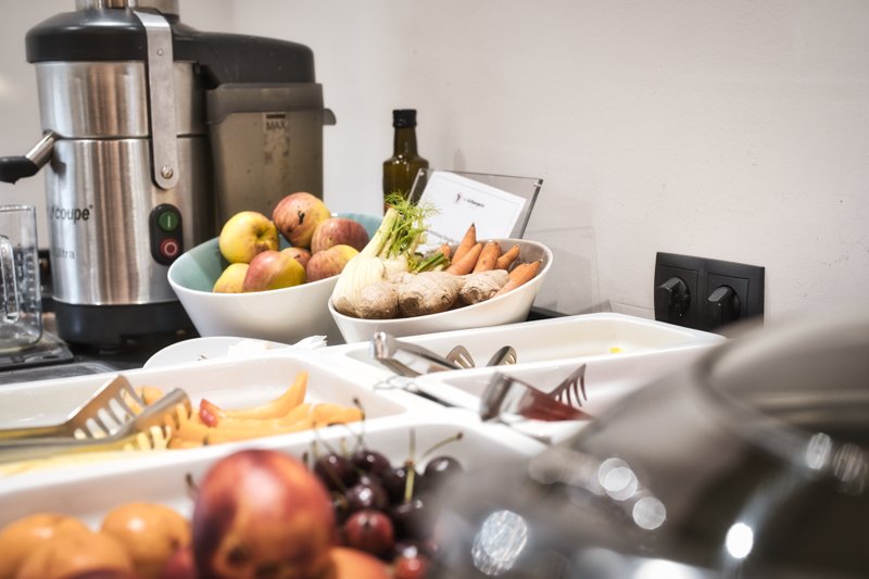 Het lifestyle ontbijt in Hotel Die Arlbergerin biedt een buffet voor elke smaak. Van zelfgemaakte ham tot zelfgemaakte jam. U kunt zich naar believen een weg banen door ons uitgebreide ontbijtbuffet.