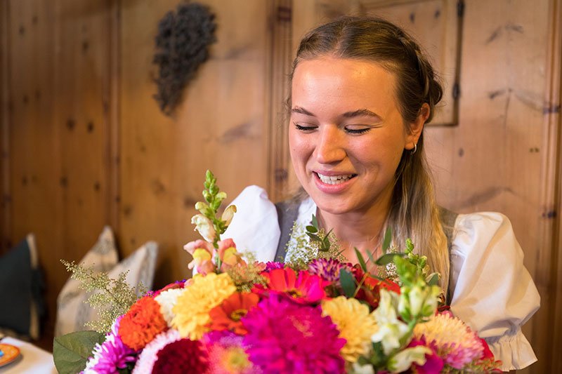 In der warmen Jahreszeit wird es bei uns besonders persönlich: Die Arlbergerin selbst – Ihre Gastgeberin mit Leidenschaft – steht in diesem Sommer am Herd. Mit viel Hingabe, regionalen Zutaten und feinem Gespür für saisonale Aromen zaubert sie eine kleine, exquisite Auswahl frisch zubereiteter Gerichte. Ein kulinarisches Erlebnis, das den Geschmack des Sommers einfängt.