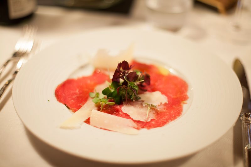 - Rindercarpaccio / geschmolzene Tomaten / Kräutersalat