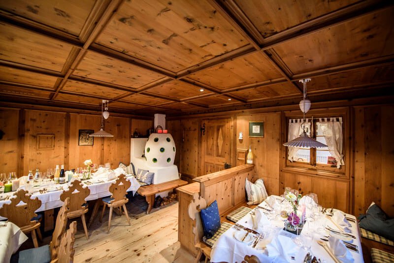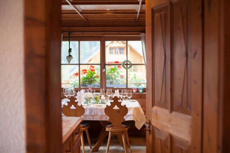 Unsere gemütliche Sonnbichlstube verfügt nur über 5 Tische. Somit der ideale Ort für ein romantisches, ruhiges Abendessen zu zweit.